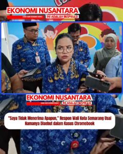 www.EkonomiNusantara.com.ǁJawa Tengah, 17 Desember 2025-Wali Kota Semarang, Agustina Wilujeng Pramestuti angkat bicara usai namanya disebut-sebut dalam dakwaan kasus Chromebook. Dari berita beredar, Agustina yang saat itu menjabat sebagai anggota DPR Komisi X disebut terlibat pembicaraan dengan Eks Mendikbudristek Nadiem Makarim, membahas pengadaan TIK 2021. Menanggapi hal tersebut, Agustina menyebut dirinya tidak menerima apa pun terkait perkara yang kini…
