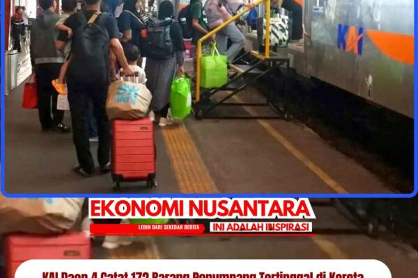 www.EkonomiNusantara.com.ǁJawa Tengah, 3 Januari 2026-Selama masa libur Natal 2025 dan Tahun Baru 2026 (Nataru), PT Kereta Api Indonesia (KAI) Daop 4 Semarang mencatat sebanyak 172 barang milik penumpang tertinggal di area stasiun maupun di dalam rangkaian kereta api. Ratusan barang tersebut tercatat dalam periode 18 Desember 2025 hingga 2 Januari 2026, seiring tingginya mobilitas masyarakat yang…
