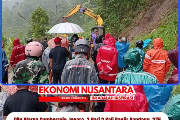 www.EkonomiNusantara.com.ǁJawa Tengah, 11 Januari 2026-Warga di dua dukuh Desa Sumberrejo, Kecamatan Donorejo, Kabupaten Jepara tak bisa berbuat banyak karena banjir bandang yang menerjang wilayahnya. Bahkan, banjir tersebut sudah dua kali terjadi selama tiga hari terakhir ini. Dari informasi, banjir tersebut dipicu oleh luapan air Sungai Tempuran. Sementara itu, akses warga di Desa Tempur, Kecamatan Keling juga terganggu lantaran banyaknya titik longsor…