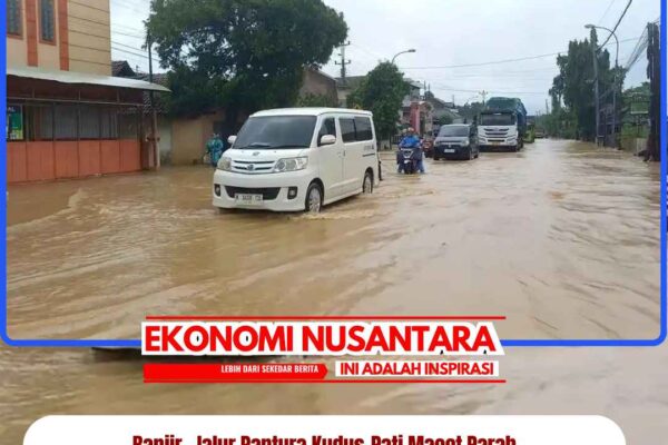 www.EkonomiNusantara.com.ǁJawa Tengah, 12 Januari 2026-Arus lalu lintas di jalur Pantura Kudus-Pati macet sepanjang 4 kilometer lebih, Senin (12/1/2026). Kemacetan ini terjadi karena jalur Pantura tepatnya di Desa Ngembalrejo, Kecamatan Bae, Kabupaten Kudus terendam banjir. Banjir yang menggenang di jalur Pantura tersebut akibat luapan Sungai Dawe. Banjir yang menggenang di pantura ini setinggi sekitar 50 sentimeter. Hal ini mengakibatkan…