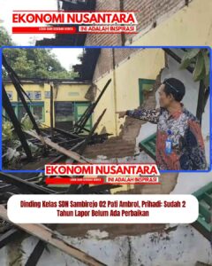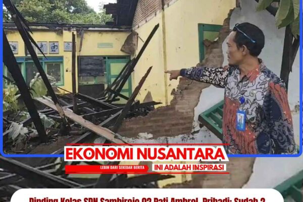 www.EkonomiNusantara.com.ǁJawa Tengah, 15 Januari 2026-Kondisi memprihatinkan terjadi di SD Negeri Sambirejo 02, Kecamatan Tlogowungu, Kabupaten Pati. Akibat cuaca ekstrem dan kondisi bangunan yang sudah lama lapuk, dinding salah satu ruang kelas di sekolah tersebut ambrol pada Rabu (14/1/2026) siang saat jam belajar masih berlangsung. Peristiwa yang terjadi pukul 13.03 tersebut dipicu oleh tingginya curah hujan yang disertai angin kencang….