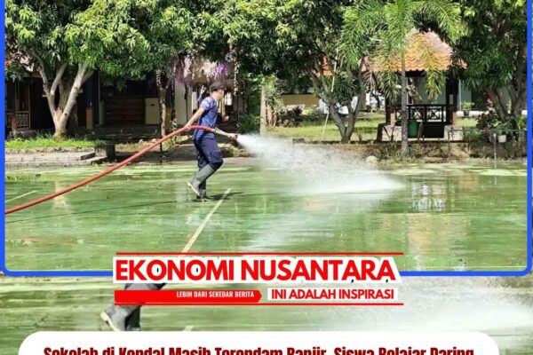 www.EkonomiNusantara.com.ǁJawa Tengah, 19 Januari 2026-Aput Eka Wartana terus berjibaku membersihkan lumpur sisa banjir di SMPN 1 Pegulon Kabupaten Kendal. Di lokasi itu, banjir tak lagi menggenang, hanya tersisa lumpur licin yang masuk ke halaman dan ruang-ruang kelas. Di tengah terik matahari, genangan banjir di sejumlah lokasi di Kabupaten Kendal masih belum surut, termasuk di sekolah-sekolah. “Iya ini…