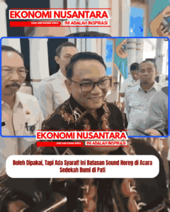 www.EkonomiNusantara.com.ǁJawa Tengah, 30 Maret 2026-Penggunaan sound horeg dalam tradisi sedekah bumi di Kabupaten Pati tetap diperbolehkan. Namun, pemerintah daerah menegaskan adanya aturan ketat yang harus dipatuhi agar kegiatan tetap aman, tertib, dan tidak merusak lingkungan. Plt Bupati Pati, Risma Ardhi Chandra, menyampaikan bahwa sound horeg masih bisa digunakan dalam rangkaian sedekah bumi yang biasanya digelar masyarakat desa pada bulan Apit…