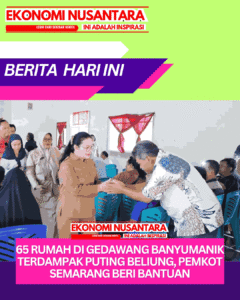 www.EkonomiNusantara.com.ǁJawa Tengah, 6 April 2026-Pemerintah Kota (Pemkot) Semarang menyebut melakukan penanganan dan pemulihan dampak bencana angin puting beliung yang menimpa beberapa rumah di Kelurahan Gedawang, Kecamatan Banyumanik. Wali Kota Semarang, Agustina Wilujeng menyerahkan bantuan paket sembako kepada warga terdampak di Balai Kelurahan Gedawang, Senin (6/4). Diketahui, bencana yang terjadi pada Senin (30/3), menyebabkan 65 rumah di RW 02 dan RW…