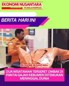 www.EkonomiNusantara.com.ǁJawa Tengah, 5 April 2026-Tim SAR Gabungan berhasil menemukan dua wisatawan asal Desa Kuwayuhan Kecamatan Pejagoan Kabupaten Kebumen yang hilang terseret ombak di Pantai Gajah. Semula empat orang terseret ombak saat bermain air di pantai tersebut pada Jumat (3/4/2026) sore. Dari empat orang itu dua di antaranya berhasil diselamatkan. Sedangkan Gilang Aditi (12) dan Kafi Al…