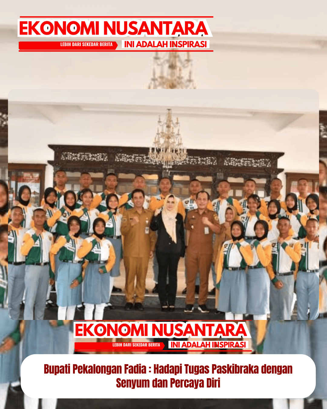 www.EkonomiNusantara.com.ǁJawa Tengah,12 Agustus 2025- Bupati Pekalongan, Fadia Arafiq, memberikan arahan dan motivasi kepada anggota Pasukan Pengibar Bendera Pusaka (Paskibraka) Kabupaten Pekalongan tahun 2025 dalam kegiatan jam pimpinan yang digelar di Pendopo Rumah Dinas Bupati, Senin (11/8/2025).