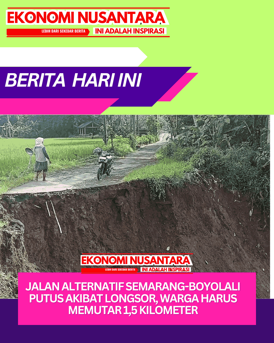 www.EkonomiNusantara.com.ǁJawa Tengah, 16 April 2026-Jalan di Dusun Kirang, Desa Sukorejo, Kecamatan Suruh Kabupaten Semarang terputus akibat longsor.